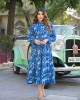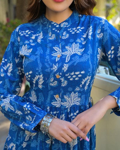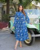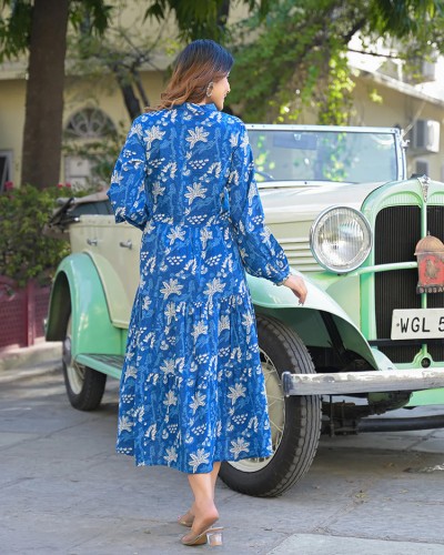 The Divena Blue Floral Print Cotton Flared Dress offers timeless elegance and all-day comfort. Made from soft, breathable cotton, this fit and flare dress features a round neckline, floral design, and flared hemline ideal for both casual and festive wear.